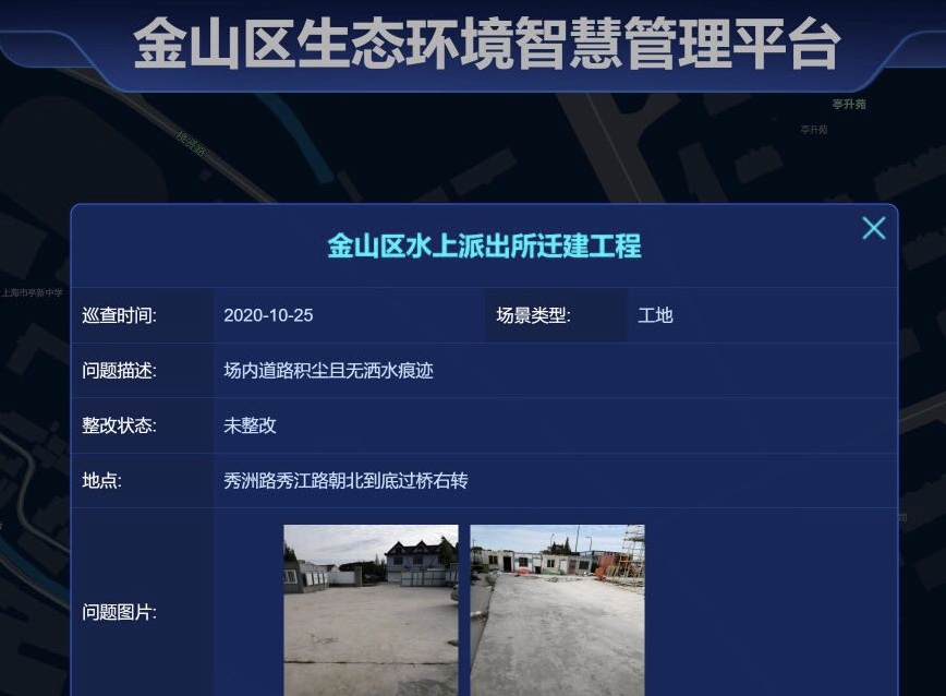 金山区按照“平战结合”和“平时为主”的建设原则,全覆盖大气污染防治管理要素。目前,区生态环境局依托线下已试点建立区、镇、村三级环保责任体系和部门协同处置机制,由区城运中心牵头,与现有城运体系网格化派单系统融合开发,将扬尘监管数据、大气“热点网格”监测的118个小微站等数据汇入城运中心管理业务平台进行数据应用赋能,依托城运分中心案件处置系统进行数据管理赋能,试点建设污染数据自动预警、系统自动派单、属地快速处置、案件销项管理的全闭环管理体系,将智能管理触角延伸到区域环境治理最末端。