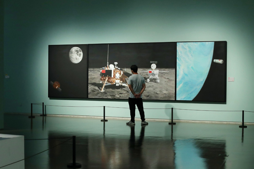 青年艺术家石至莹曾参与过“历史文脉”和“时代风采”两次重大工程创作。本次展览展出作品《探月》以“嫦娥四号探月”为题材,石至莹说:“现在所发生的重要事件就是将来的历史。当下发生的事件,具有当代的属性,而艺术作为一种对思维和体验的技艺性表达方式,也具有时代属性。”