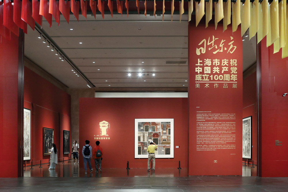 “在写实的基础上追求形式,艺术化地展现中国共产党的光荣历史和不朽功勋,将党史与现代艺术审美融为一体,以美学的方式来阐述党的发展历程。”6月24日,“日出东方——上海市庆祝中国共产党成立100周年美术作品展”在中华艺术宫揭幕,画家洪健在展出画作《上海:红色起源地》前这样阐述自己的创作体会。