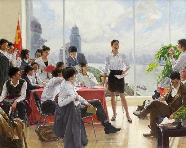 展出的140件(组)作品,一半以上是从近年市文旅局、市文联组织的历次重大美术创作工程中精选出来的作品。其中,从“日出东方——上海市庆祝建党百年青年美术创作项目”中选出的40件展出作品中,第一作者年龄在45岁以下的作品就有29件。进入到这一项目大稿创作阶段的100作品中,第一作者年龄在45岁以下的作品有74件。