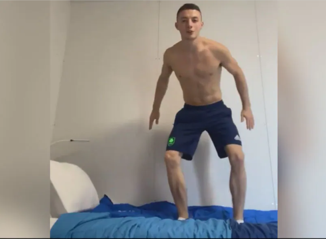 爱尔兰体操运动员里斯·麦克莱纳汉特意录制了一段视频,他一边在床上连蹦带跳,一边说,“这显然是假新闻!”