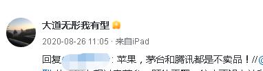2020年8月,段永平表示,苹果,茅台和腾讯都是不卖品。