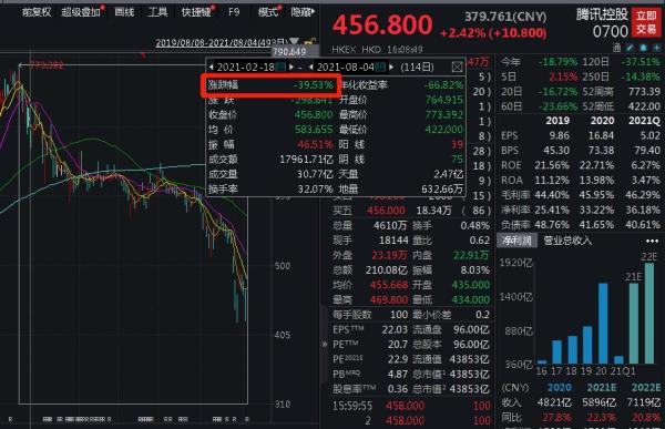 腾讯的股价最近有点惨,昨日又一度暴跌超6%。虽然今天股价略有反弹,但距离773港元的高点仍跌近40%。