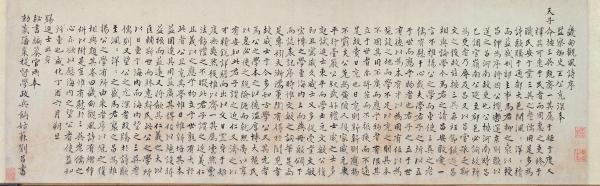 王濬的身份,也可以从《畿甸观风图》卷中得到证实。卷尾明代学者刘昌的行楷书诗序表明,画中红袍官员为明代监察御史王濬,他曾奉天子之命按察江南地区。在任期间,他爱民如子,律令严格,多有惠政,因此还朝之时,三吴老儒多以诗歌赠之。1477年,马愈把这些诗歌汇集成卷,并题“畿甸观风”四字,还附上画卷,曰“有慰于三吴老儒之心”,且“欲以慰海内之望公者,使益知所重也”,请刘昌作序。