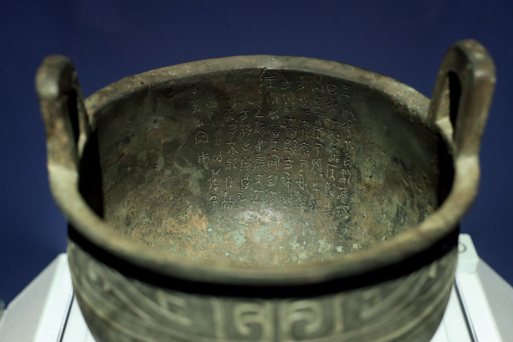 “根据目前考证,西周早期噩、曾两国为西周王朝扼守南境、控制金路往来的重要诸侯国,西周晚期噩国还曾与周王室联姻。”韦心滢介绍,这尊噩侯驭方鼎见证了噩国与西周的“岁月静好”。鼎的内壁有铭文 86 字,记录了周王南征后,返程中当时的噩侯驭方设宴招待周王,饮宴之后两人还一起射箭,驭方屡中红心,周王亲赐了许多礼物,驭方为纪念此事专程铸造此鼎。