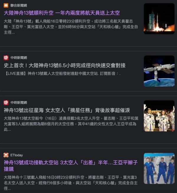 台湾媒体报道“神舟十三号”载人飞船顺利升空