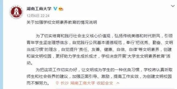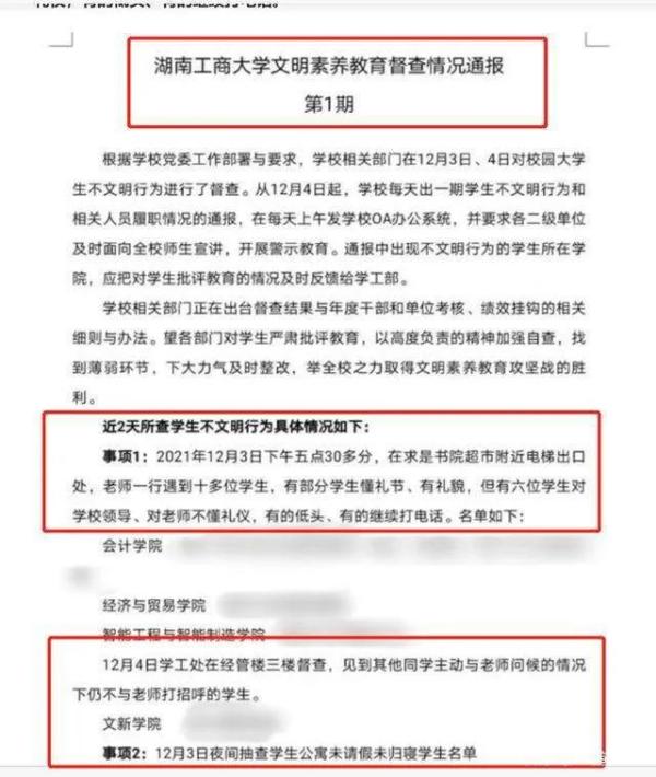 近日,湖南工商大学多名学生因未向校领导、老师问好,被学校通报批评为“不文明行为”。这份通报引发网络热议,被网友质疑为“矫枉过正”。