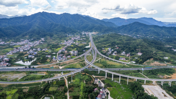 2025年8月19日拍摄的湖南炉慈高速慈利西互通枢纽(无人机照片)。炉慈高速是G59呼和浩特至北海高速公路的一部分,位于常德市石门县及张家界市慈利县境内。这条高速将长江三峡、壶瓶山、张家界等黄金旅游景点串珠成链,构建起湘鄂两省“两小时旅游圈”。新华社记者 陈思汗 摄