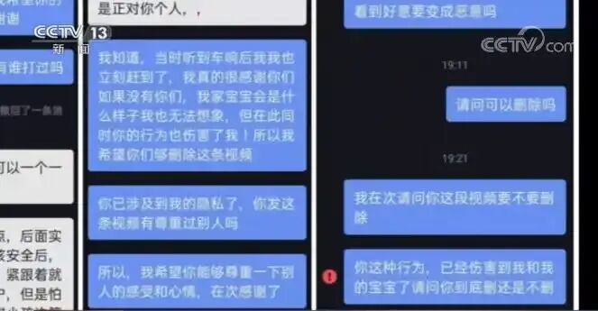 按理说,好心人帮了忙,孩子家长应该感谢才是,但凌先生却被孩子妈妈徐女士指责了。原来,为了找到其母亲,为了留下保护施救者的证据,凌先生待现场稳定后,将一段十几秒钟的视频发到社交平台,视频中涉及被困孩子的面容和车辆号牌。下午,救助男孩的短视频已经获得一千多次点赞,孩子的母亲徐女士也开始通过私信与他沟通。
