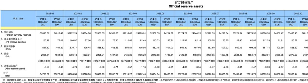 国家外汇管理局表示,2025年10月,受主要经济体货币政策及预期、宏观经济数据等因素影响,美元指数上涨,全球金融资产价格总体上涨。汇率折算和资产价格变化等因素综合作用,当月外汇储备规模上升。我国经济基础稳、优势多、韧性强、潜能大,长期向好的支撑条件和基本趋势没有变,有利于外汇储备规模保持基本稳定。