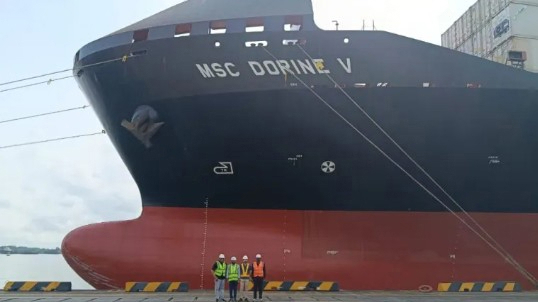 近日,尼日利亚昂内多功能码头(OMT)泊位上,一艘蓝色巨轮缓缓靠岸。这艘名为MSC多琳V号的庞然大物,实现了从中国至尼日利亚的直航,为中尼与西非间的贸易往来开辟了一条快捷且经济的新路径。