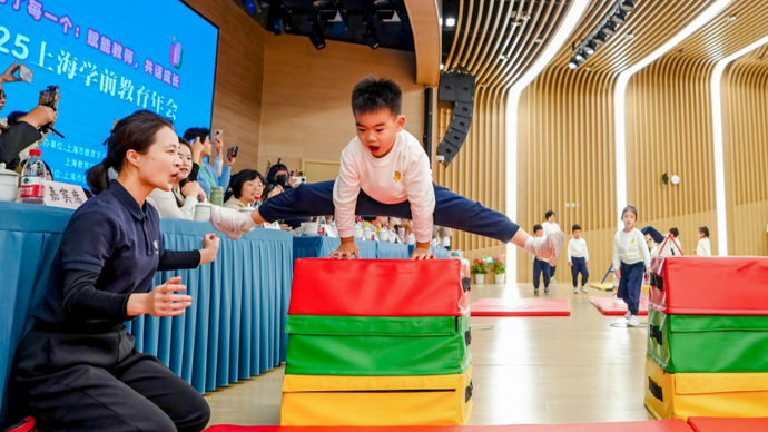 3岁的孩子做前滚翻,4岁的孩子尝试单杠翻转,5、6岁的孩子挑战横箱跳马……日前,在2025年上海学前教育年会中国福利会托儿所展示专场上,一些学龄前幼儿在近半小时的中高强度活动中,不仅“拿”下了这些有难度的动作,更表现出了身体的灵活性、协调性以及身体力量和平衡性,让现场的学者和教师赞叹不已。