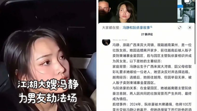 随后,国内一些自媒体结合相关画面编撰、传播诸如“江湖最后的大嫂”等视频,其在讲述中称,“负责递枪帮助囚犯越狱的女子叫冯静,是来自广西来宾市兴宾区大湾镇的壮族姑娘”。不少自媒体配上悲壮的音乐,讲述了“冯静父母为彩礼,将她嫁给一个老头,冯静不从并沿着山路选择逃婚。最后,她跑到越南,之后,在一些风月场所,她认识了越南当地的一位“大哥”并成为“大哥”的女人”……如今,“大哥”有事,“江湖最后的大嫂”冯静一人带着一把枪冒险劫囚越狱……