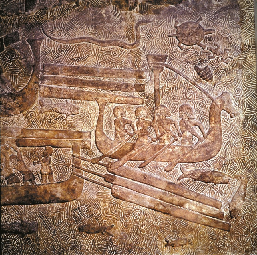 公元前8世纪的浅浮雕,描绘运送黎巴嫩木材的腓尼基船只 现藏巴黎卢浮宫
