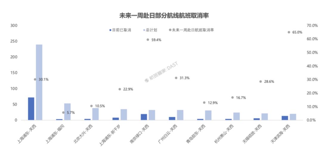 航班管家数据则显示,未来一周赴日计划航班取消率将在11月27日达到21.6%,为1个月以来最高值。