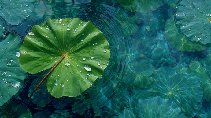 回来后,我的脑海中尽是苍翠的青山、澄碧的湖水。但是,那几片孤独傲然的荷叶,它们占据了我心扉的一角。