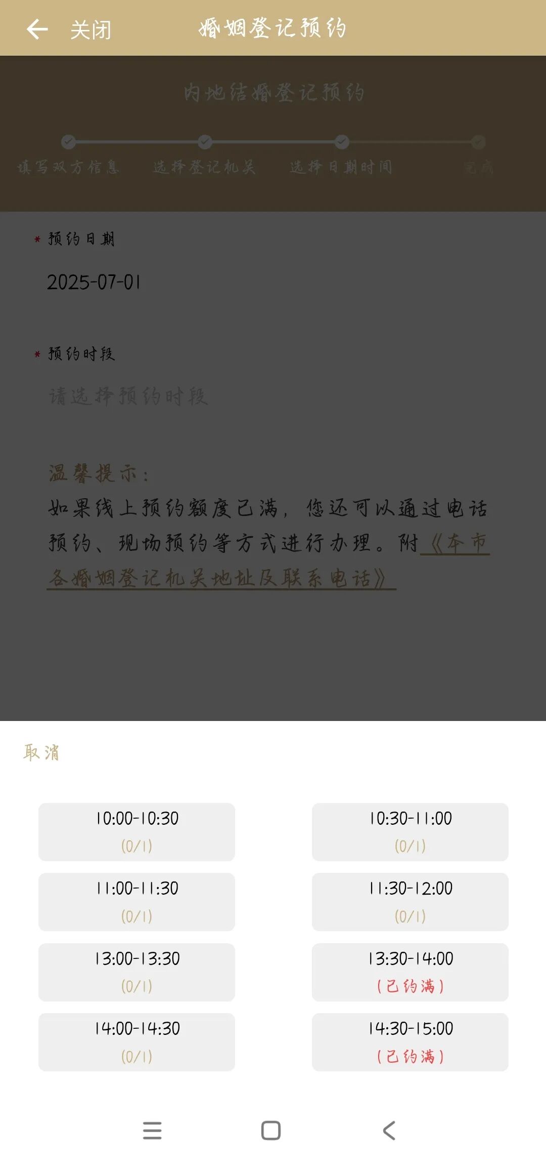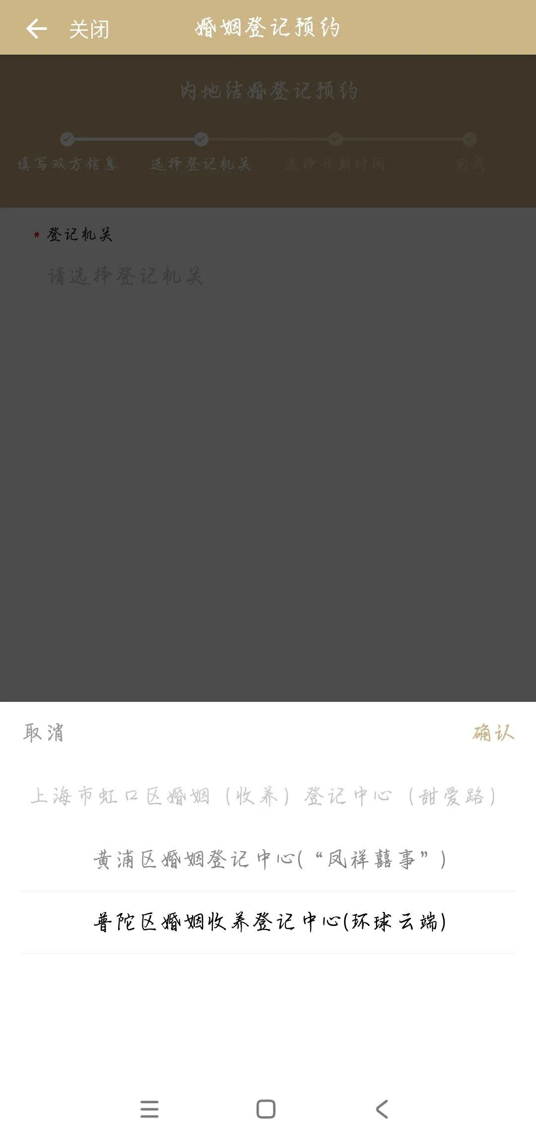 ▲选择结婚登记预约