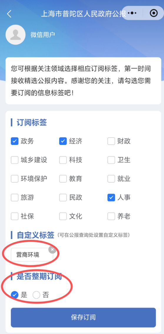 原标题:《精准匹配需求!“普陀区人民政府公报”小程序新增“自定义订阅”功能》