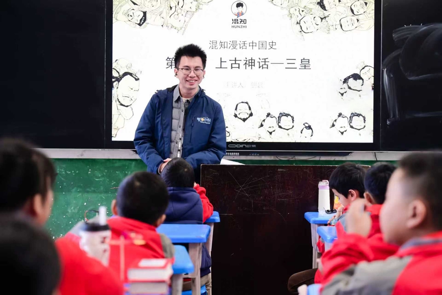 除了STEM科学课,此次探访也依托各位参与志愿者的特长,给孩子们带来了不少拓展课程。不仅有知识科普类IP大咖“混知”团队带来了一场强互动的人类起源历史课,让历史课本上的原始人、智人都动起来,在孩子们参与他们的“对话”中了解了那段悠远的历史。音乐老师志愿者教唱《音乐之声》并讲解音乐在生活中的运用,更有上海广播电台主持人上的一堂“大师级”朗读课,引起了孩子们的巨大兴趣和热情参与。多元的课程设计,生动示范了对“科学+人文”综合素质的引导发展,并与乡村基础教育形成有效互补。