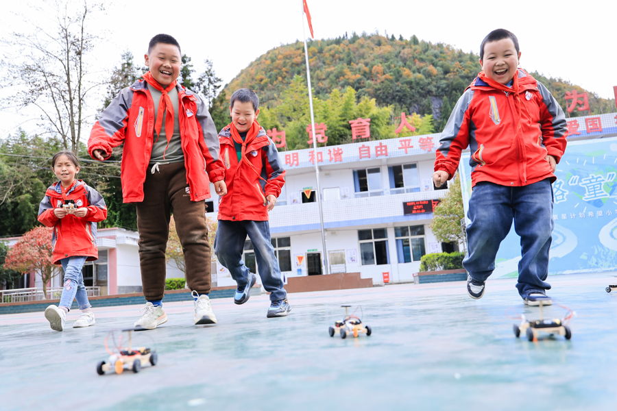 2023年,上汽大众与青基会基于乡村教育需要,共同开发了一套适配乡村九年义务教育系统的STEM课程(科学、技术、工程和数学教育)。这所位于恩施利川的上汽大众希望小学也是首批课程落地的学校之一。课堂上,在志愿者的带领下,低年级学生先掌握初级科学原理,并动手组装了太阳能小车;高年级学生则学习了制作汽车模型,攻克工程“难题”。课程中巧妙融合了力学、材料学等物理知识与工程技术,提升学生多学科素养的同时,也培养了科学理念。