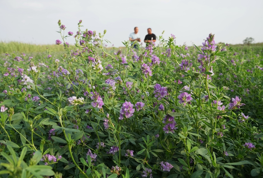布尔津县城人家的牛儿每天清晨在额尔齐斯河老桥头集合,有专门的放牛人带着它们往和布克赛尔方向的草原去。苜蓿正开出直顶天穹的紫色花朵,牛儿们在那里反刍复反刍,卧在小海子边悠然望南山。黄昏前的明亮里,它们排着纵队发出“哒哒哒”的清音,一路回到布尔津城,它们的主人正站在桥头。牛儿们身上沾扯着很多苍耳,需要主人耐心地清理。“牧草之王”苜蓿的花语是希望与幸福。这种多年生草本原产伊朗,汉代经西域传入中原。