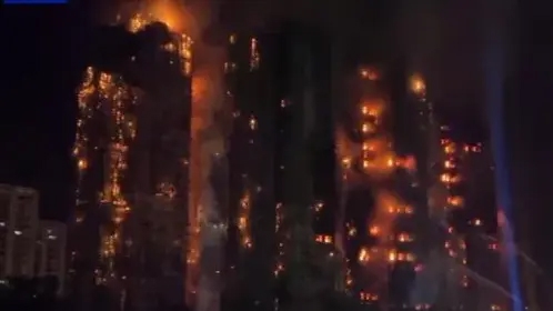 公开视频画面显示,香港大埔宏福苑宏昌阁外墙棚架燃起大火,火势达数层楼高,浓烟席卷半空,部分建筑材料掉落,楼内部分住宅单位内更有火焰喷出窗外。现场不时传出爆炸声,附近部分建筑已受波及,情况危急。
