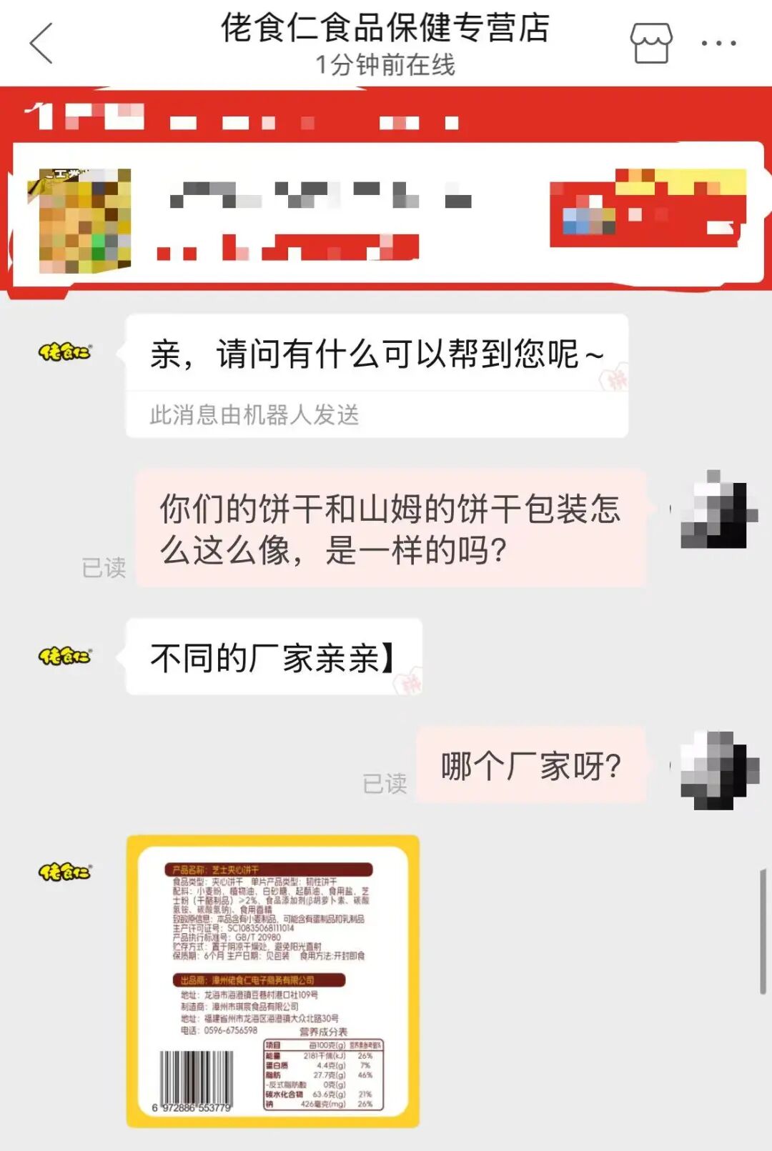 原标题:《一品牌饼干包装与山姆的高度相似,网友调侃“专坑老实人”,客服回应:公司名叫佬食仁》