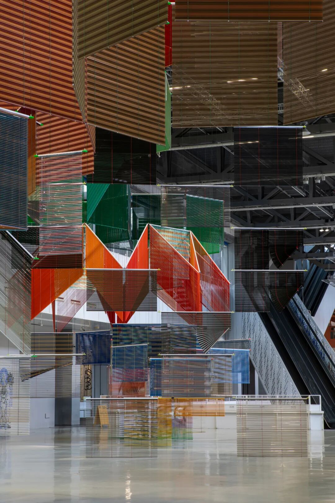 但不管以怎样的方式解读,当代艺术始终依然需要文本阅读,因为好的当代艺术作品是多层次的,它可以予人表层的感官解读,亦能给有志于深入理解作品的人以深处的思考。就比如前文提到的那件风铃树作品,背后并不是美好与浪漫——如果你愿意往深一层思考的话。这件名为《森之幻影》的作品其实隐喻的是无根可依、无枝可栖的花——就像一片不复存在的森林留下的残迹。作品的黄花风铃木意象来自原产于加勒比地区的“阿马里洛橡树”,那里如今正面临着资源过采与气候变化的威胁。艺术家表示,他们并不是在讲故事,而是在建构一个记忆体系——一个关于流离失所、迁徙和转化的生态。