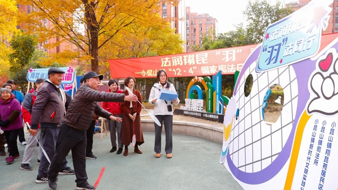 2025年12月2日,在第十二个“12·4”国家宪法日来临之际,“法润翔昆 ‘羽’法同行”主题活动在松江区小昆山镇翔昆苑居民区火热上演。活动将法治宣传与全民运动深度融合,以“法治快闪”与“体育游戏”的形式,让宪法知识不再局限于厚重的书本,而是化身为羽毛球场上的一次精准发球与得分,百余位居民在欢声笑语中完成了对宪法精神的深度感知与理解。