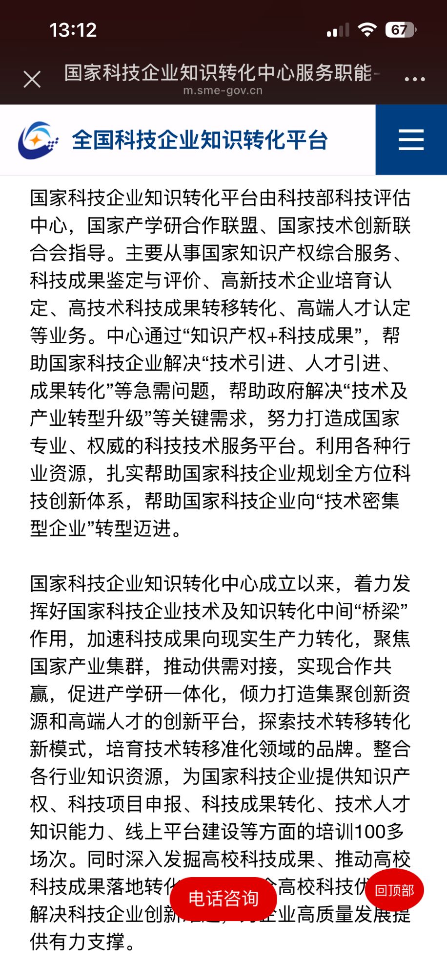 该平台介绍称,平台由科技部科技评估中心,国家产学研合作联盟、国家技术创新联合会指导。主要从事国家知识产权综合服务科技成果鉴定与评价、高新技术企业培育认定、高技术科技成果转移转化、高端人才认定等业务。