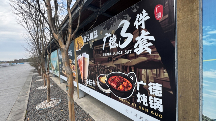 广德南站广场上的“三件套”广告。 于量 摄
