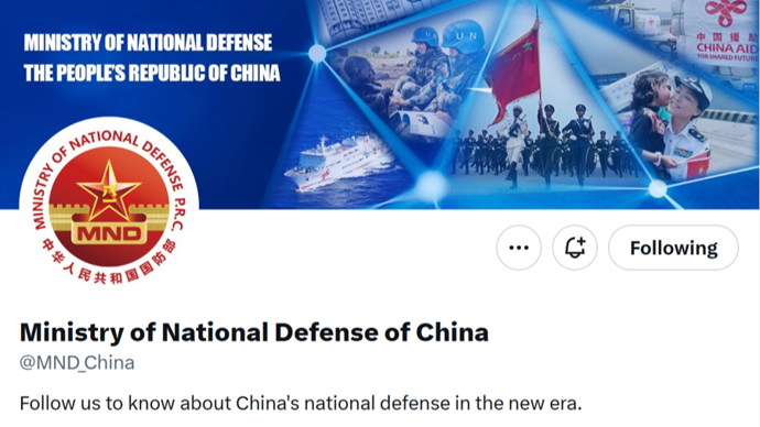 12月8日,中国国防部在海外社交媒体X平台正式开通官方账号。