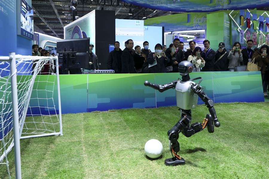 第六届长三角国际文化产业博览会上机器人踢足球 图片来源:新华社