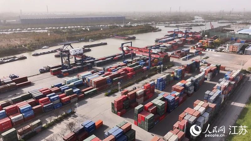 2024年,淮安港以突破57万标箱的内河集装箱吞吐量,连续16年位列江苏省内河港口第一名。人民网记者 余乐摄