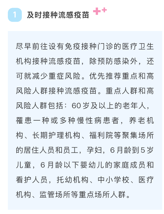 及时接种流感疫苗,有效降低感染风险及重症发生概率。