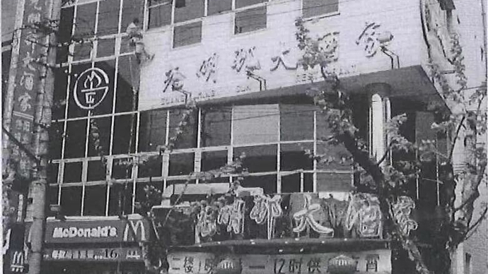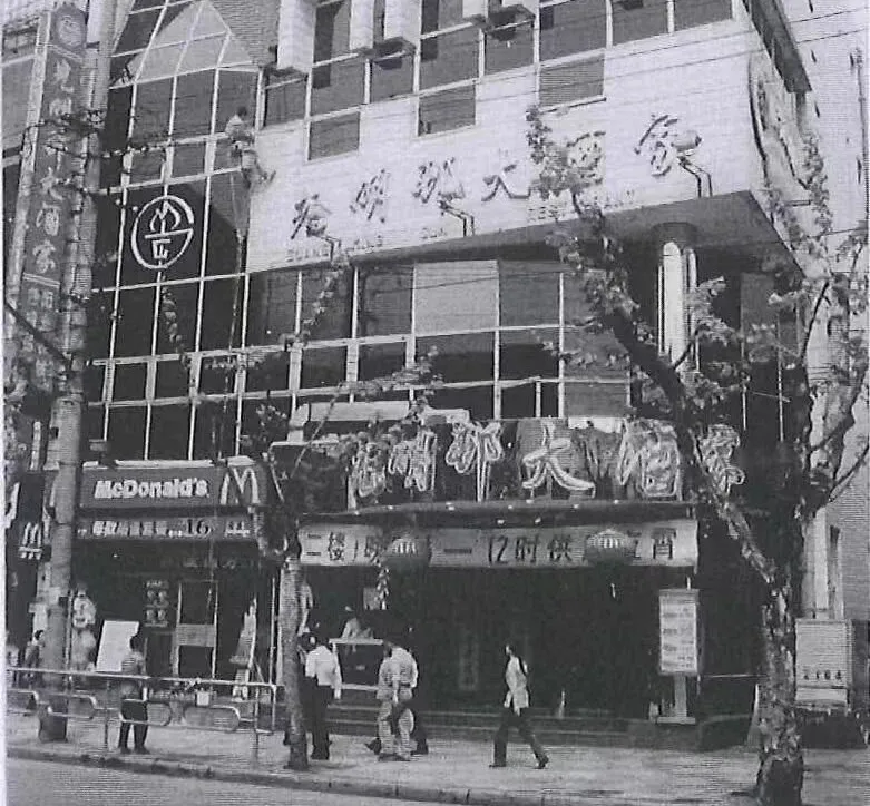 先前的霞飞路,后来的淮海路,著名的商业街,会有烟囱?有,就在最黄金地段的淮海路。光明邨点心店——现在的光明邨大酒店,原来西侧夹弄里,高高竖着。