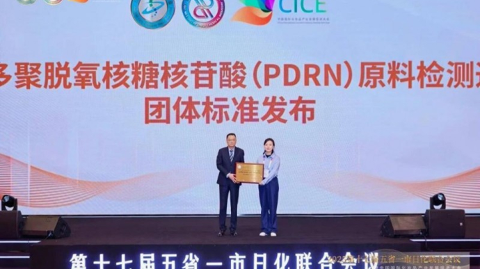 佰鸿华湙集团董事长史雯亮出席会议,携全生态PDRN技术成果与行业标准建设硕果亮相,并在核心展区打造全生态PDRN创新成果展示平台,集中呈现系列创新原料、定制化解决方案及代表性合作案例。会上,由佰鸿华湙牵头、上海日用化学品行业协会组织制定的《化妆品用多聚脱氧核糖核苷酸(PDRN)原料检测通用要求》团体标准正式发布,相关参标单位获统一授牌。该标准系统规范了PDRN原料的范围、术语和定义、基本信息、检测通用要求及方法、试验要求,为行业发展提供了重要依据。