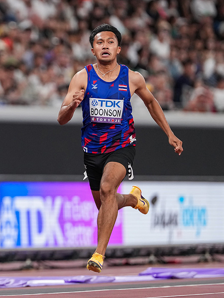 作为泰国田径届近年来重点培养的新星,布森自幼展现出过人的短跑天赋,16岁便以10秒19秒刷新尘封23年的泰国男子100米纪录。2023年杭州亚运会,17岁的他以10秒02的成绩收获男子100米亚军。
