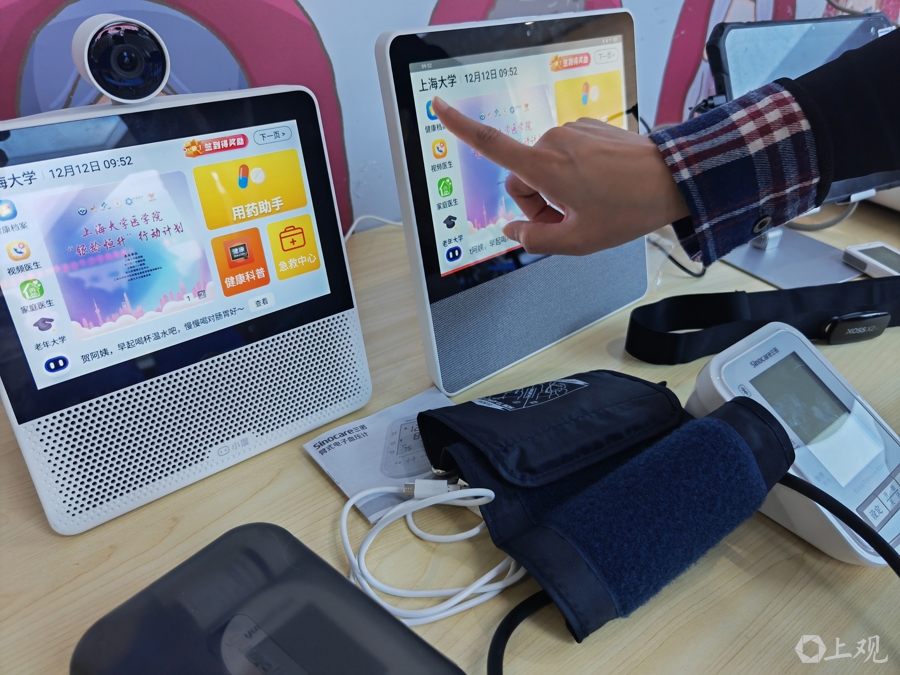 作为老年人口比重超过45%的上海老龄化程度最高区,虹口区面向社区先期招募了12户老年家庭参与沉浸式体验。入选的“银发体验官”们,在“银龄健康导师”指导下,围绕“小景智能屏”开展第一阶段为期3个月的智慧康养服务,内容涵盖个性化膳食建议、科学用药管理、定制锻炼与康复训练等,并可体验扫码录入药品、一键问诊等功能。
