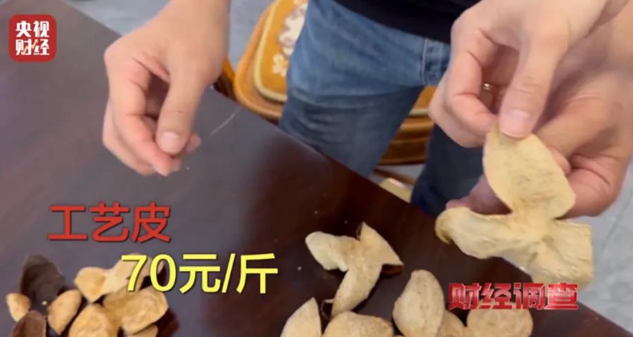负责人透露,不同“年份”工艺皮本质相同,批发价均70元左右一斤,零售价差极大,标五年款卖500元一斤,标十年款卖1000元一斤,仅凭外观就能翻倍抬价,利润超成本十倍以上。