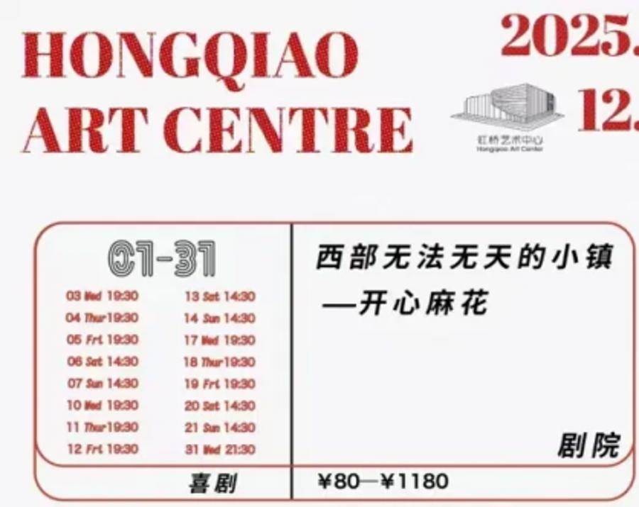 虹桥艺术中心包含一个千人剧场,七个特效影厅,数个活动空间,是一座集剧场、电影放映、文化艺术展览等为一体的综合性文化设施。剧场共有固定座位997 个,其中一层池座723 个,二层楼座274个。 剧院采用雅马哈CL5 48路 数字调音系统,声艺GL8- 2000模拟台48路,美亚音响。剧场配备有先进的灯光和音响设备,适合举办音乐剧、话剧、综艺舞台秀、戏曲等多种形式的演出。12月开心麻花喜剧《西部无法无天的小镇》、音乐剧《长腿叔叔》、舞剧《平潭映象》等剧目即将上演。