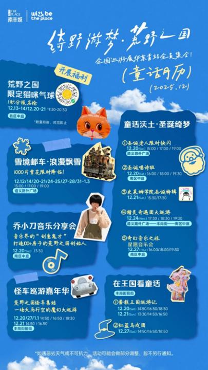 活动时间:12月每周五 15:00-21:00;每周六、周日12:00-21:00;12月24日、12月25日 15:00-21:00