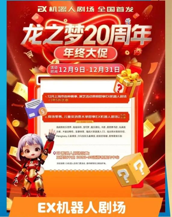 2、 龙之梦20周年庆 机器人剧场:门票5折