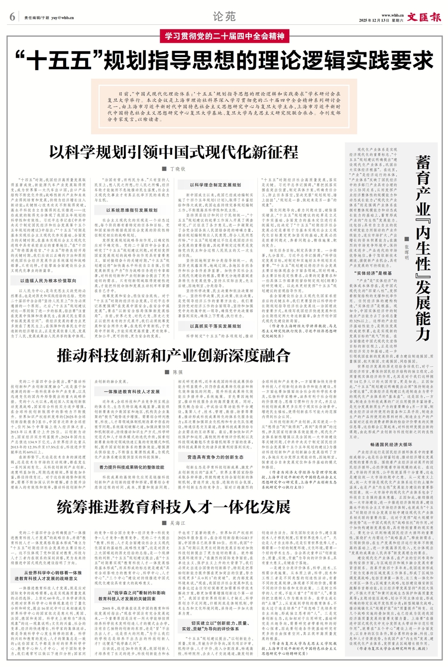 现代化产业体系是实现经济现代化的重要标志。“十五五”规划建议明确提出“建设现代化产业体系,巩固壮大实体经济根基”。在这里,“产业”是经济运行的本体,“产业体系”反映了国民经济中的多部门产业具有合理的分工协同关系,从而发挥产业经济整体性的规模能力和动态成长能力;“现代化产业体系”则是强调产业体系在拥有整体规模能力和动态成长能力的基础上,蓄育形成产业的“内生性”发展能力。这包括:具有自立自主的技术研发能力所驱动的产业升级能力,适应市场扩大、产出增长的资本积累能力;在激烈的市场竞争环境中,保持技术进步、产品迭代的市场优势地位,善于驾驭新技术潮流、捕捉新产业机会,具有产业发展的可持续能力。
