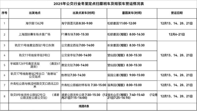 原标题:《方便市民冬至期间祭扫,上海开通8条扫墓定点班车》