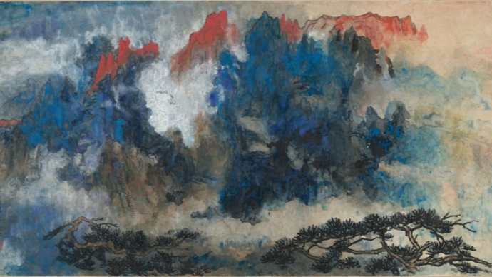 刘海粟《满江红》,1988,纸本设色,129×244CM,香港大学美术博物馆藏
