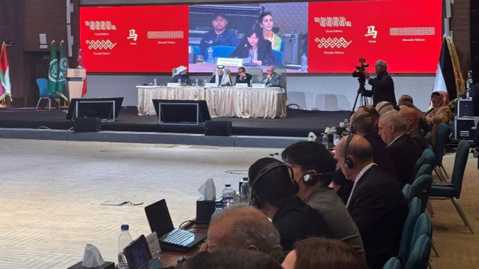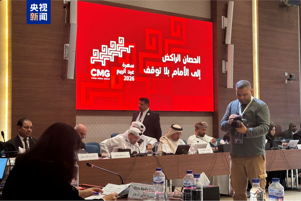 当地时间12月16日,中央广播电视总台《2026年春节联欢晚会》主题和主标识在第45届阿拉伯国家广播联盟(阿广联)大会期间亮相,吸引来自阿拉伯国家主流广播电视机构、媒体组织及业界代表的广泛关注。