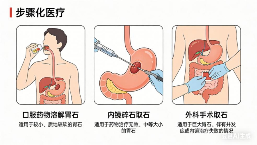 如果出现持续性上腹疼痛、饭后饱胀、不明原因呕吐等症状,特别是近期曾大量食用柿子、山楂等食物,请立即就医。胃石症早发现、早治疗,能避免溃疡、出血、穿孔等严重并发症。