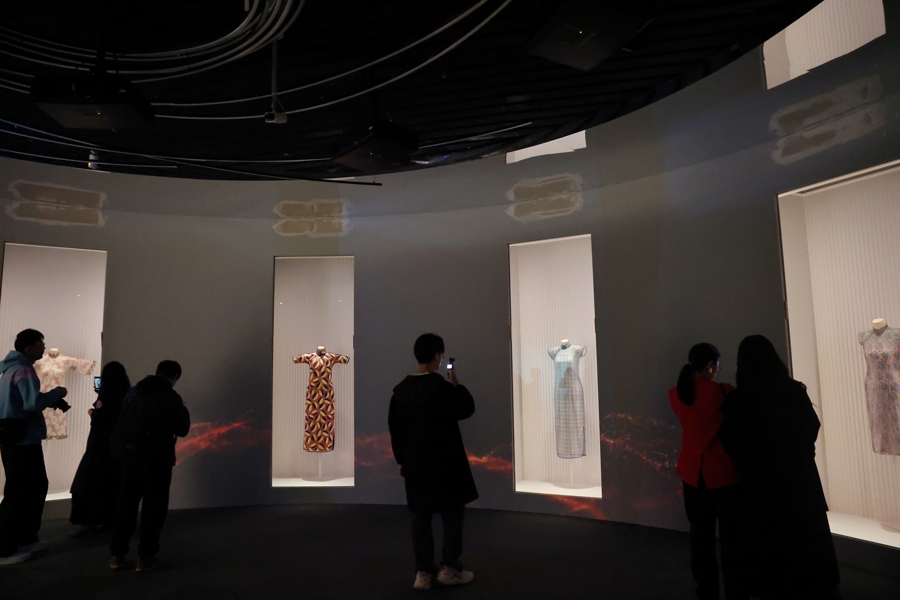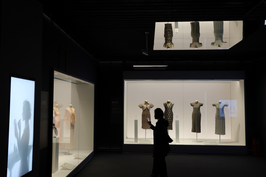 12月18日,解放日报·上观新闻记者提前进入“摩登华影”展厅探班,前三个展厅基本已经布置妥当,众多精美旗袍服饰令人目不暇接,从20世纪20、30年代的摩登样貌初成,到40年代挺拔利落的实用主义;从50年代的沙漏型曲线设计,到60年代后融入全球化浪潮,旗袍的百年流变,是一部以针线为笔、布料为纸写就的审美演进史。