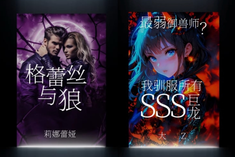 左为2025WSA金奖网文作品《格蕾丝与狼》中文海报,右为2025WSA“年度之书”《最弱御兽师?我驯服所有SSS巨龙》中文海报。
